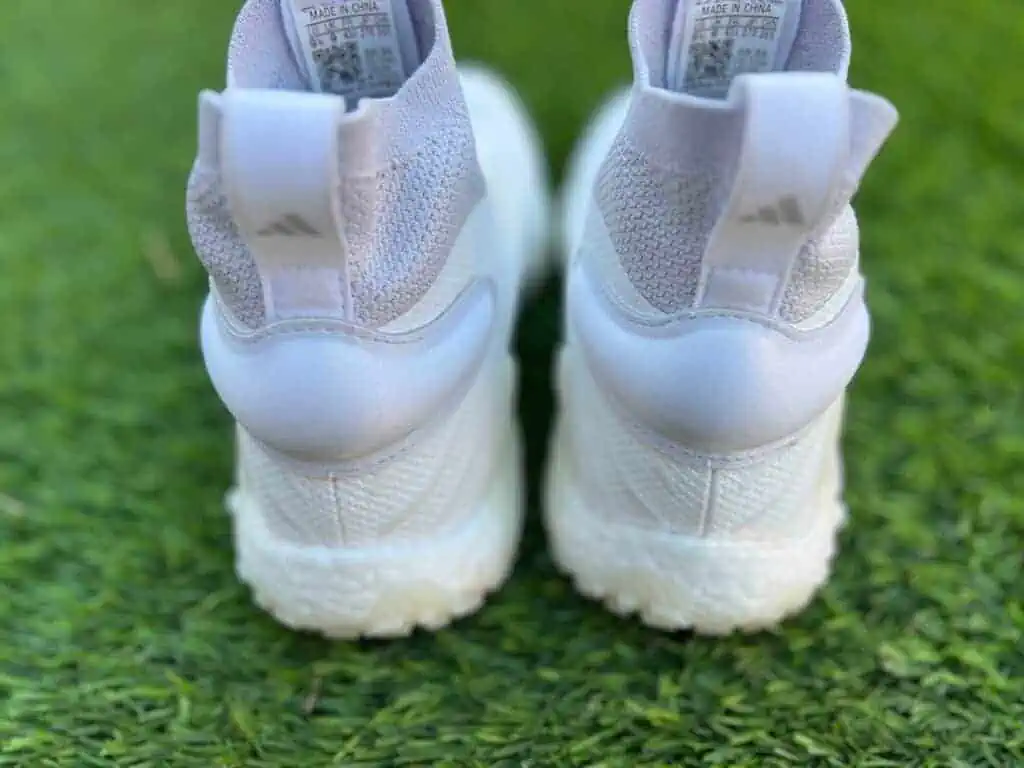 The Adidas CODECHAOS Laceless Golf Shoes are a non-traditional, futuristic looking shoe that performs surprisingly well for all 18 holes. They are very comfortable right out of the box for all 18 holes, they grip like a champ on any surface and their laceless hightop uppers hold your feet in place easily and securely. There is a big cushion on the outside of the heel area that serves to softly flex and yet hold your foot in place. They breath exceptionally well to so that your feet never gets hot. They are waterproof too with a hightop upper which makes them better than most in wet conditions because the water doesn’t drip down on the top of your socks. The CODECHAOS shoe platform is one of our favorites because of the BOOST comfort, stable sole, spikeless design and comfort while walking, add the laceless uppers and you have a new, futuristic shoe that is comfortable and works well.