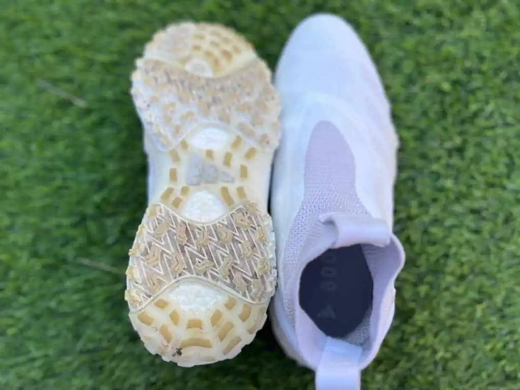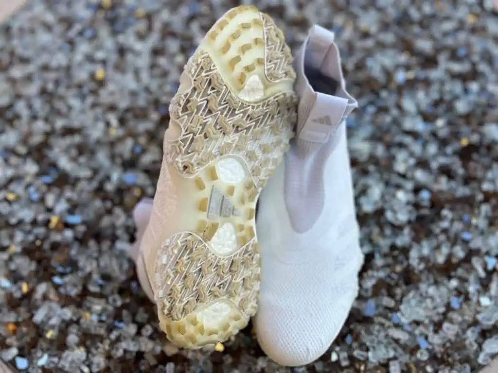 The Adidas CODECHAOS Spikeless Golf Shoes are built on the CODECHAOS platform which is a spikeless outsole called Twist Grip. It is a mixture of zones, ridges and flex points which keep your feet firmly attached to the ground. I had no slippage whatsoever while wearing these shoes. The sole in combination with the laceless fit work well to keep feet from sliding around while walking or swinging. While not as tight as laces, not loose or slippery. I like how the sole flexes to stay connected to the ground, yet has a smooth look and feel while walking off the course. These could easily be your daily shoes to work, for going out or anywhere you want a slightly futuristic look. These soles are durable and multi-functional.