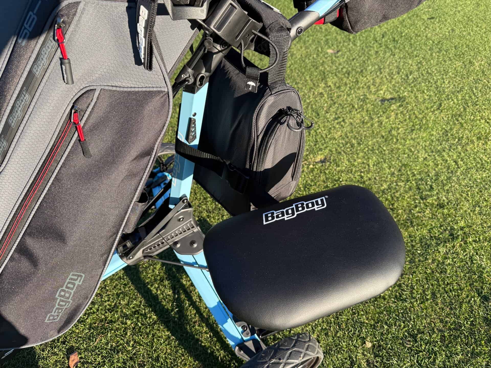 If you would like to make your walk more enjoyable, I highly recommend these two Bag Boy Cart Accessories: Seat and Insulated Cooler Bag. These additions to your cart are some of the best purchase you can make for a more relaxing and more hydrated 4 hour round. They are reasonably priced add-ons that are worth every penny while playing golf.