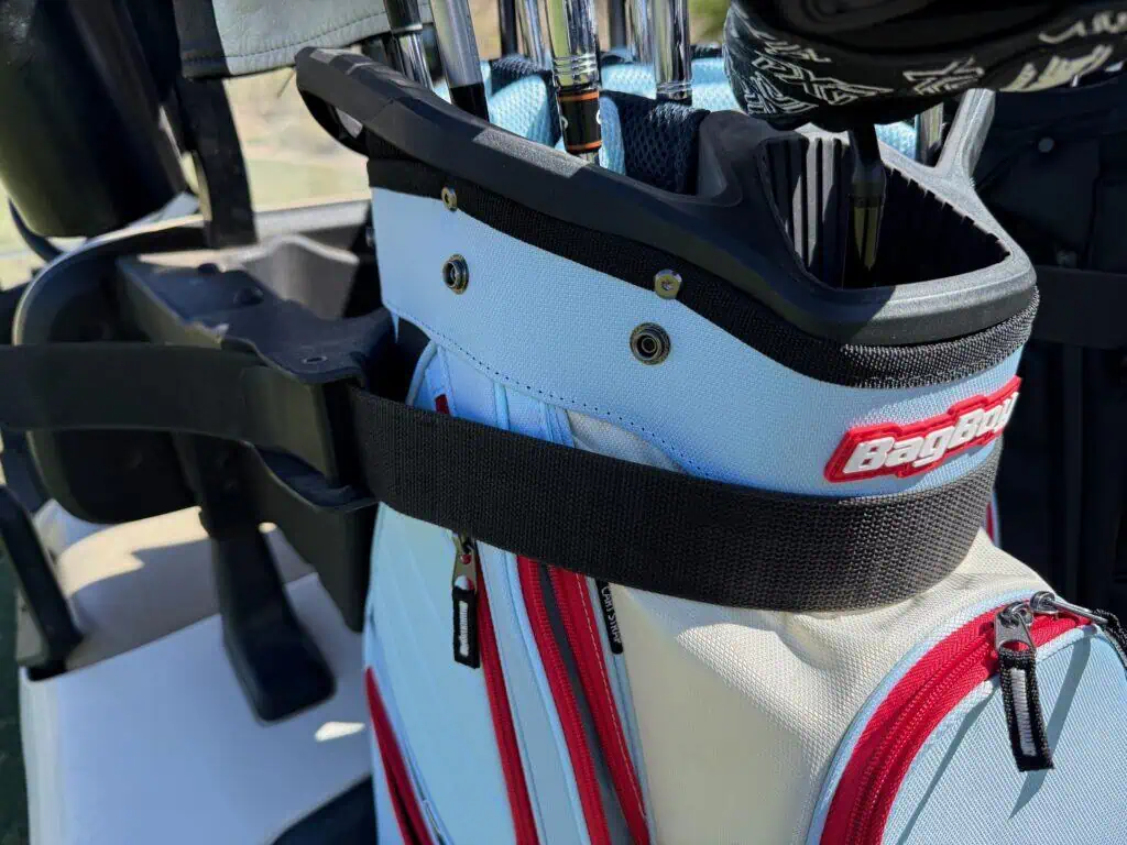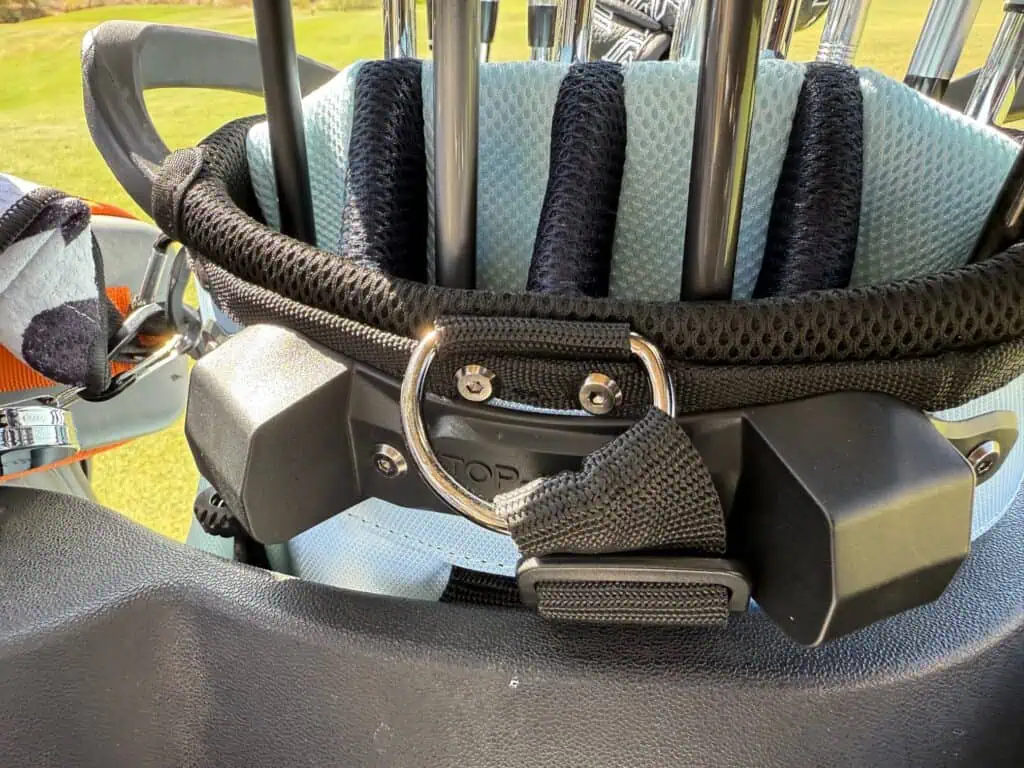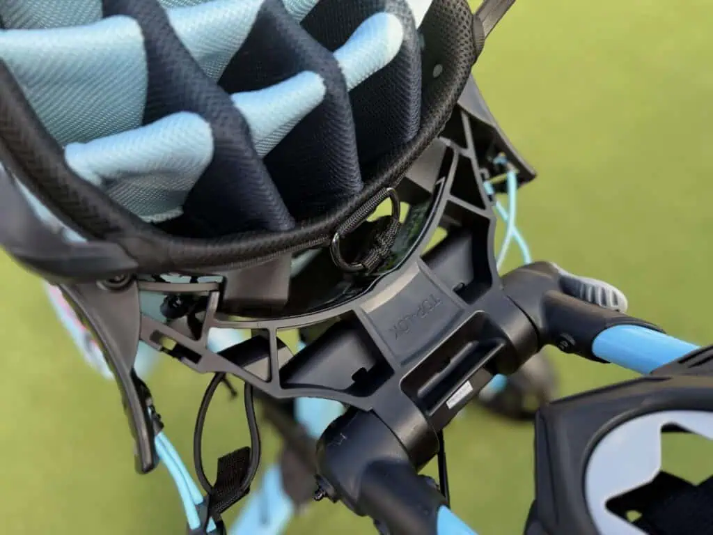 The Top-Lok system is excellent for both push or power cart by keeping the bag in place nicely in place without twisting.