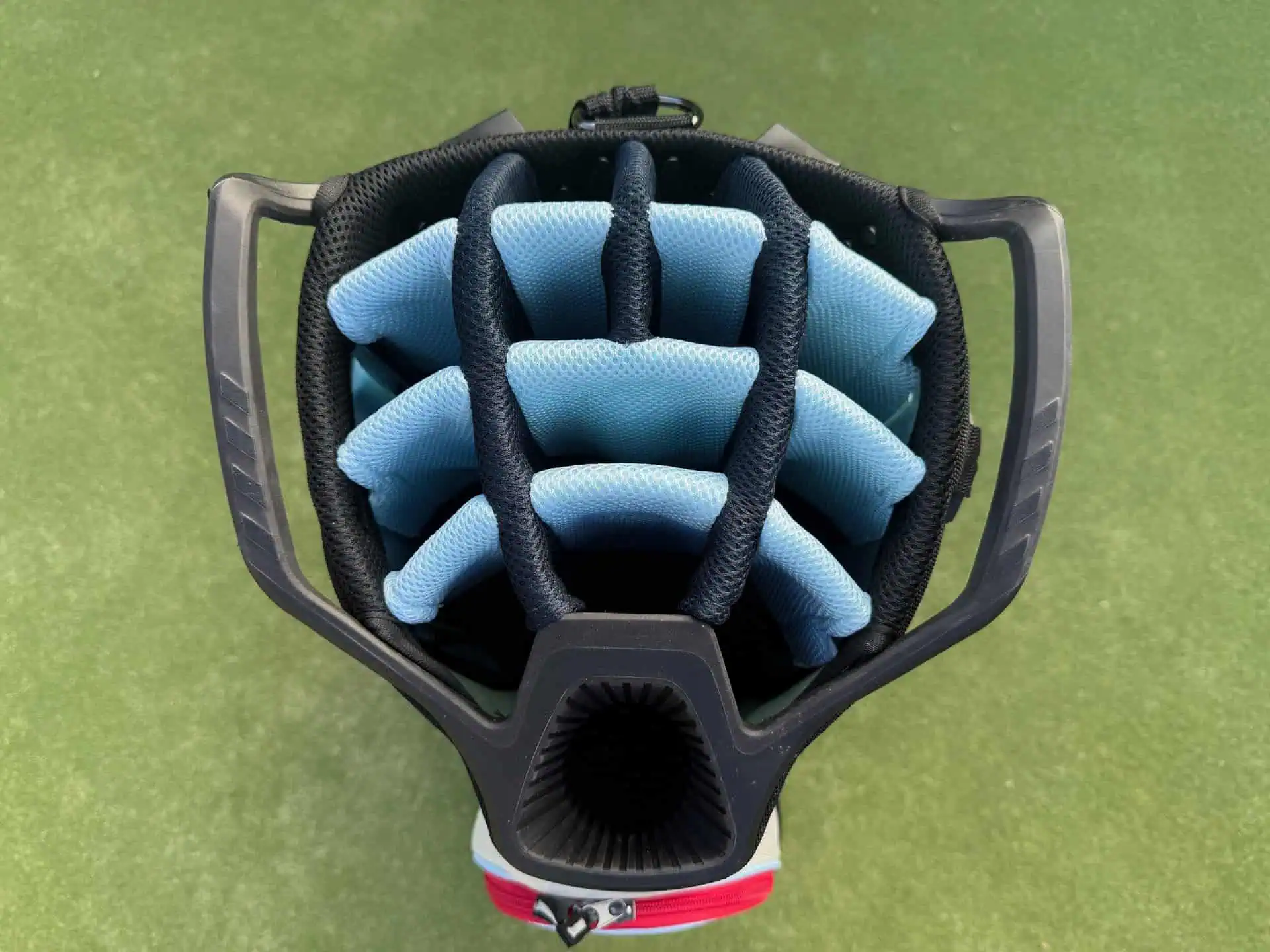 I love the fact that I can keep everything I need for practice sessions and a round of golf loaded in the top of this bag without two clubs binding against each other in the same slot.
