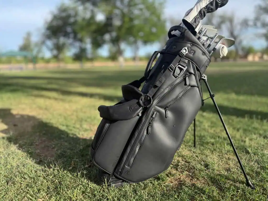 Ten years ago golf bags were pretty much all the same: some version of nylon material with an OEM logo that was either a stand or cart bag. Since then, there has been a huge shift in the golf bag market with the rise of luxury brands and materials. . The BIG MAX Dri Lite Hybrid Prime Bag uses one of the most innovative SoftGuard PU materials in a hybrid bag design. This is the most durable and luxurious golf bags you can buy with a functional hybrid design. I used and abused this bag for 6 rounds of golf and it still looks like new.