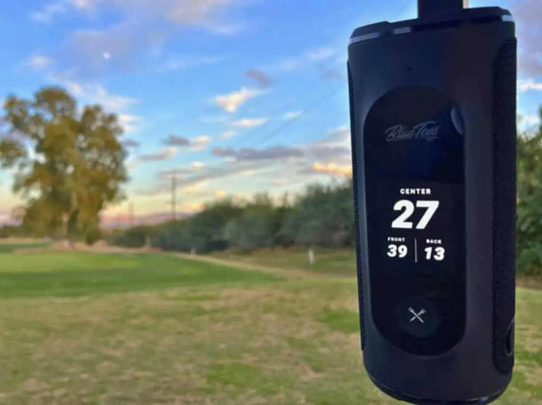 The Blue Tees Player+ GPS Speaker is the best on the market right now in terms of sound and GPS function.