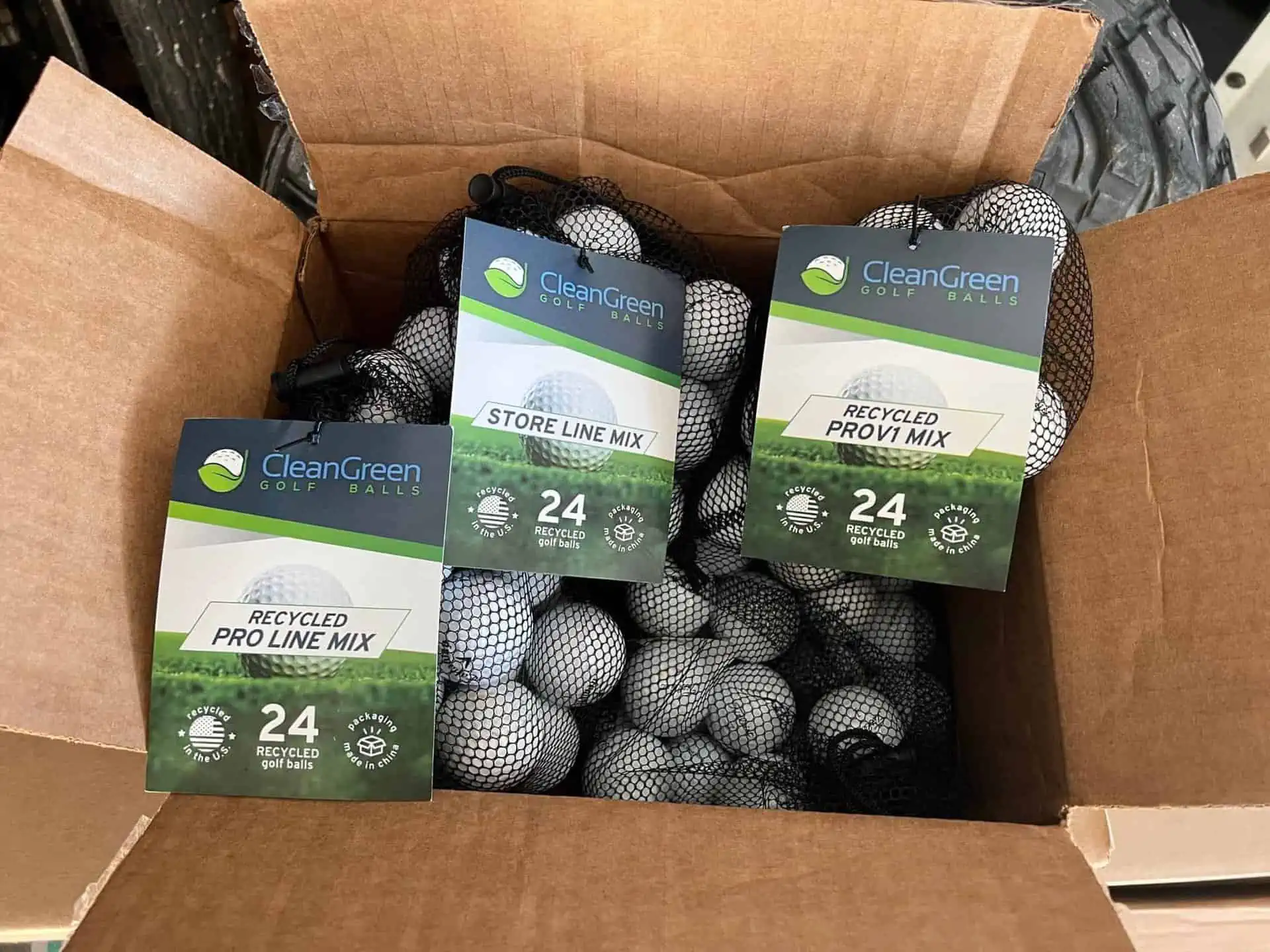I received a box full of a variety recycled golf balls from Clean Green Golf Balls ranging from their dozen mint ProV1 to their 24 count “Store Line” bag.