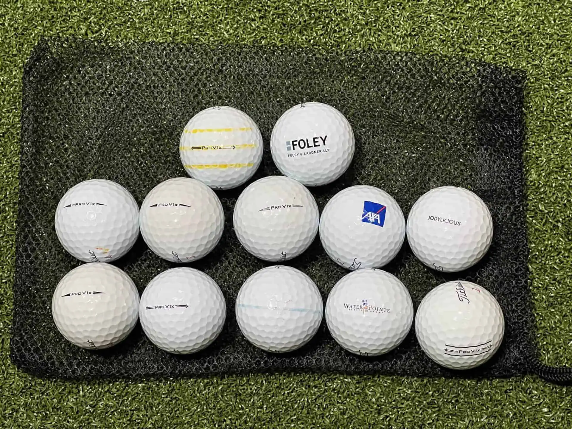 The Mint ProV1s from Clean Green Golf Balls are recycled balls that they acquire from various sources, wash, clean, and package in net bags.