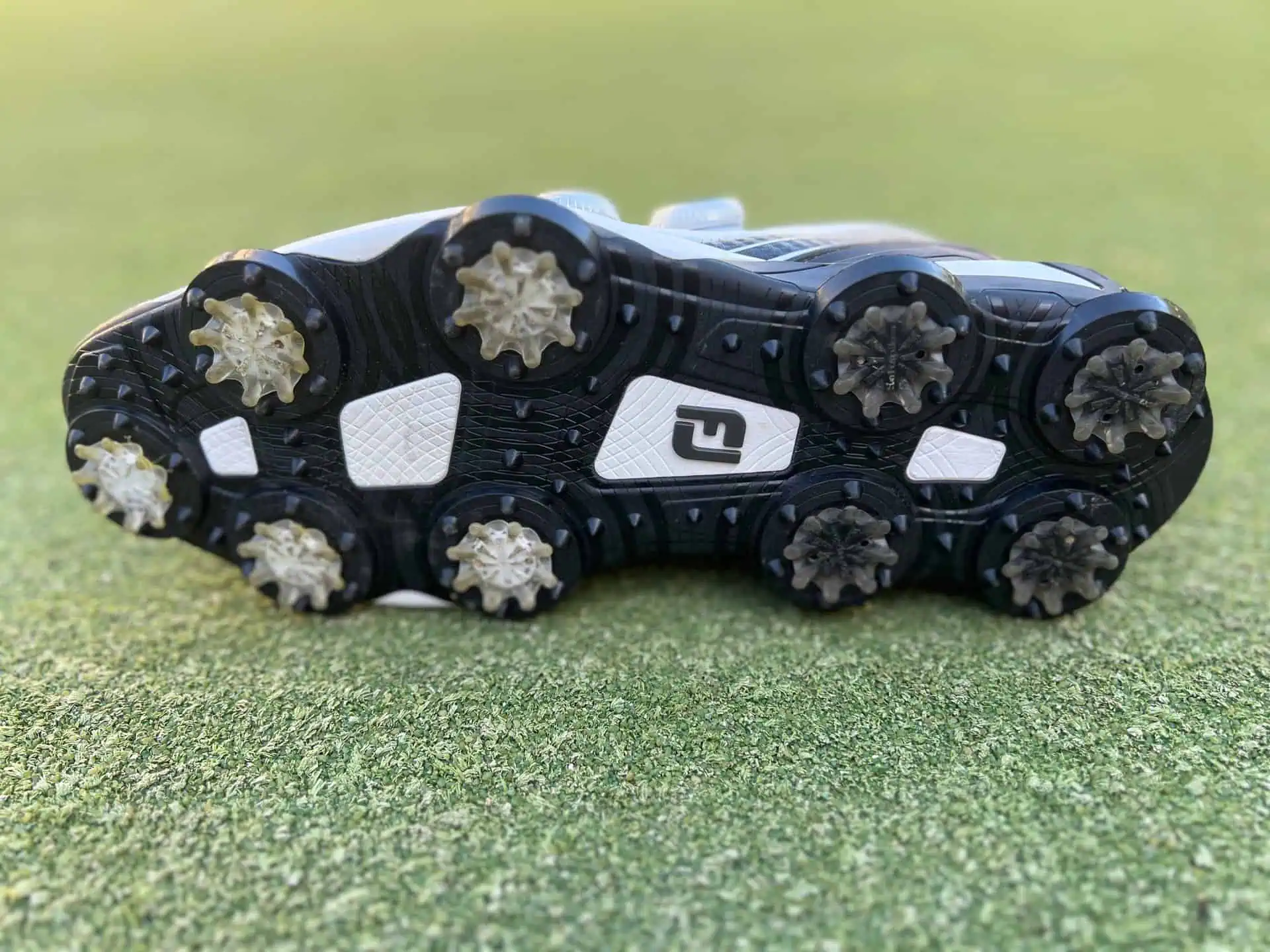 The FootJoy Tour Alpha Carbon Triple BOA Golf Shoes are mainly made of ChromoSkin Leather. It is a waterproof and supportive leather that holds up really well to aggressive swings. However this means that they are stiff and take some time to break in. The Triple Boa and Carbitrex offer a precise fit so that the break-in time was minimal, but I noticed the stiffness in the toe area of these shoes. The leather just isn’t as supple and flexible as other shoes. They had some unnecessary rub on my toes as I was walking 18 holes. After that, the stiffness went away and these shoes offered elite stable and support. If you are looking for a golf shoe that is going to last you a while, the combination of Chromoskin leather, Carbitex, BOA and Spikes are the most durable shoes you can buy.