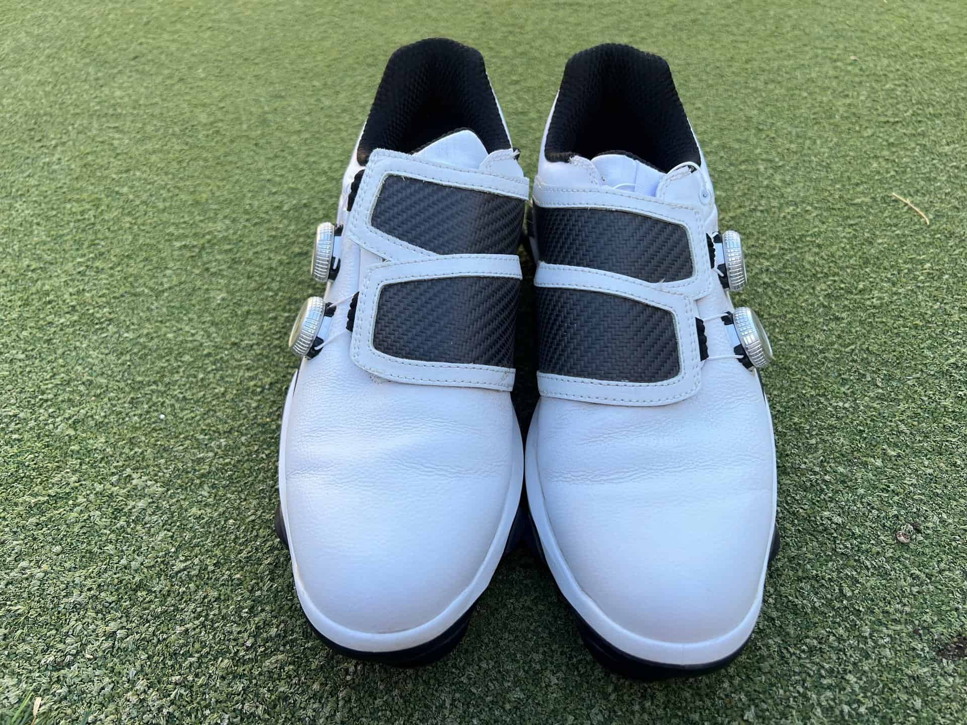 The FootJoy Tour Alpha Carbon Triple BOA Golf Shoes are the most intense golf shoes I’ve ever worn. They locked my feet to the ground while swinging clubs for 4 rounds.