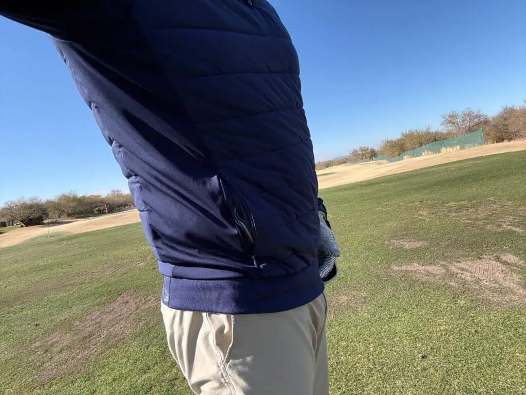 The Fergus Hybrid Hoodie by Galway Bay is the PERFECT Golf Hoodie. I’m a huge fan of the hoodie movement in golf and from November to February I wear one almost every time I play golf in AZ. It is perfect because it is warm in the right places, has lots of stretch, is super comfortable, and looks stylish. The body quilting is the perfect blend of warmth and breathability. It is perfect for golf between 40*-65*. It keeps the core warm without overheating. The sleeves are thin and stretching which is all a golfer needs. The hood is similar to the sleeves and works great to keep the neck warm and can be worn when the wind blows. If the weather gets worse than I’m comfortable wearing the Fergus Hybrid Hoodie, then I probably don’t want to play golf. It is weatherproof, not waterproof. I’ve worn a lot of hoodies and this is the PERFECT golf hoddie.