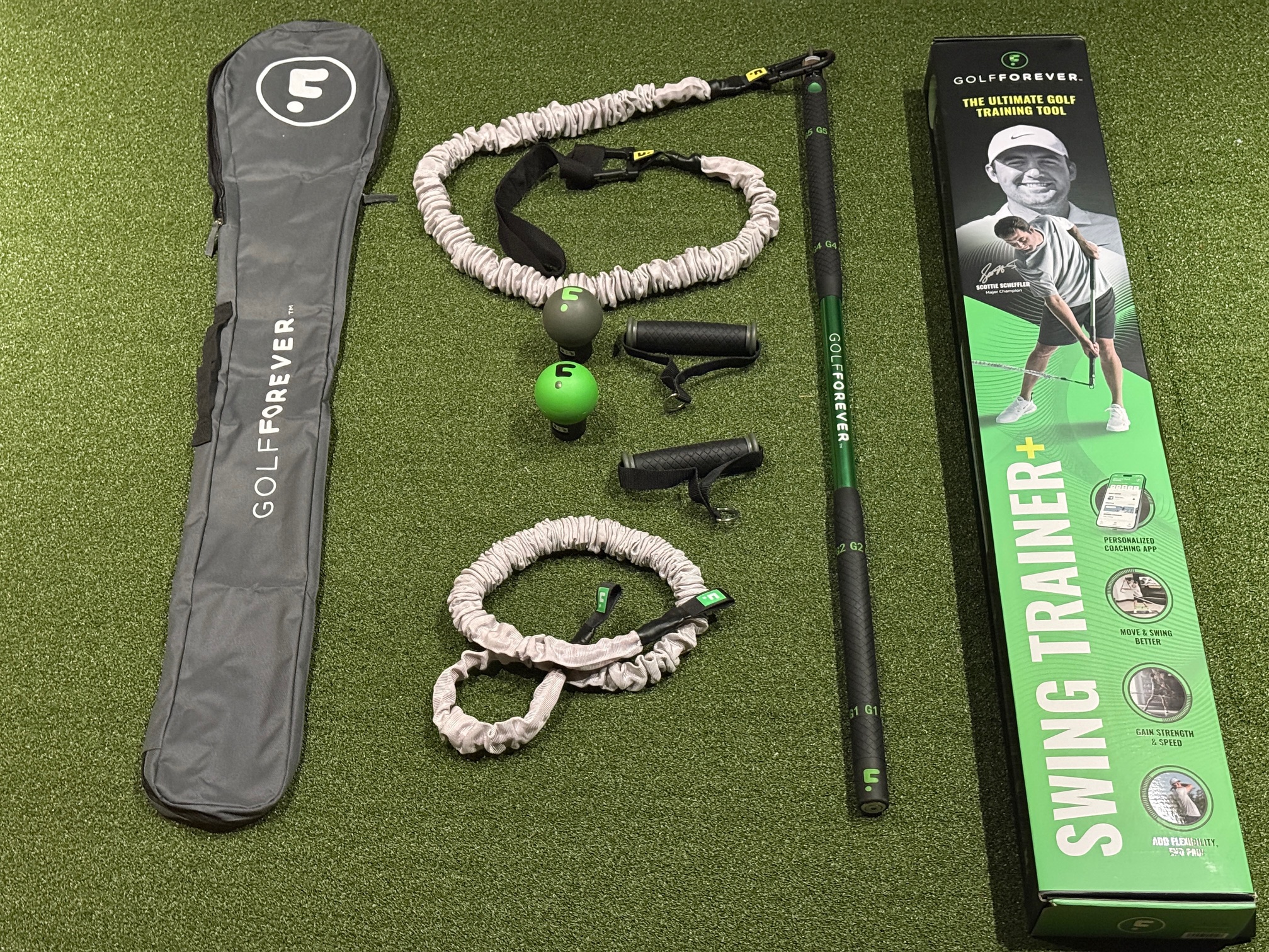 The GolfForever Training System is different. It is golf specific fitness program with workout equipment and integrated swing training tips. It is more about getting your body in shape, your motions synced and preventing injuries. There is a reason the #1 golfer in the world Scottie Scheffler uses it. It doesn’t make his swing picture perfect, but it keeps him strong, flexible and able to avoid injuries. So this training aid won’t make you the #1 golfer in the world, but it will allow you to play golf better, stronger and injury free. The idea of golfing forever is real no matter what age you are, if you keep you body fit and ready to play.