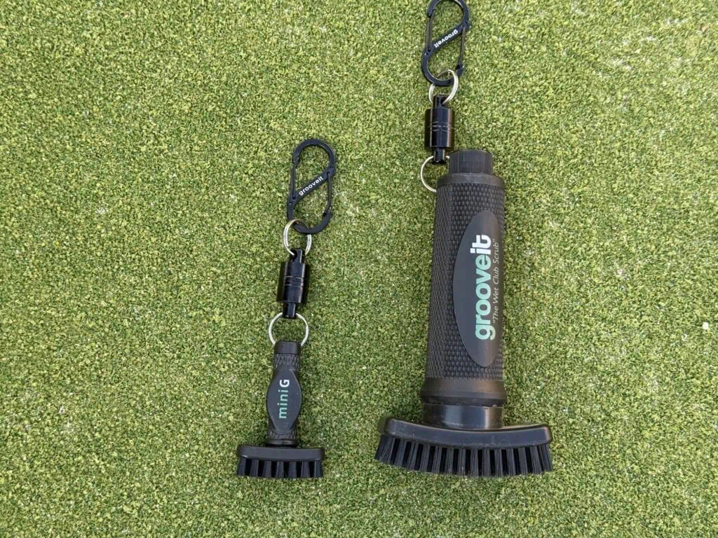 Having a club cleaning tool attached to your bag increases the likelihood of scrubbing your clubs before shots.