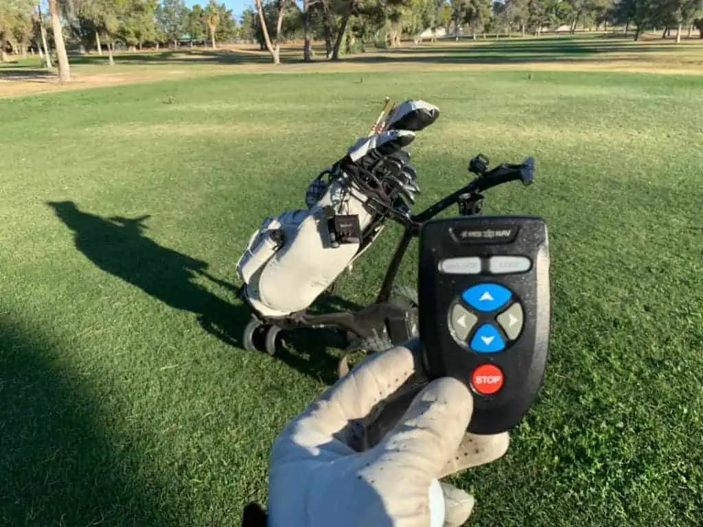 It functions like a push cart, but because it is electric powered and remote controlled you get to enjoy your walk like it is your caddie.