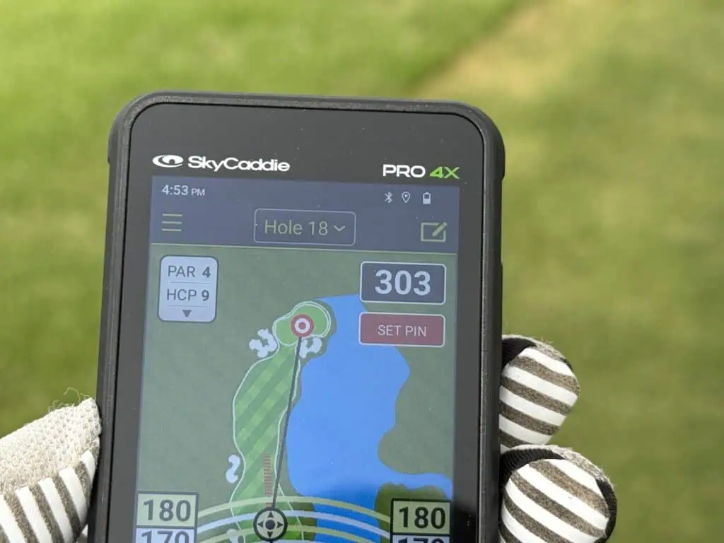 The SkyCaddie PRO 4X GPS Tourbook is a dedicated golf GPS. The 4″ screen looks and functions like any other high quality smart phone. You slide, pinch, swipe, toggle, etc just like you would on your phone without any distracting text messages or phone calls. That really is the beauty of this tourbook. The simple on/off button the two side buttons control brightness. The touch screen GPS is easy to use and simple to navigate. Power it up, select your course and play. SkyCaddie did a great job of making a touchscreen that can function while wearing a golf glove too.