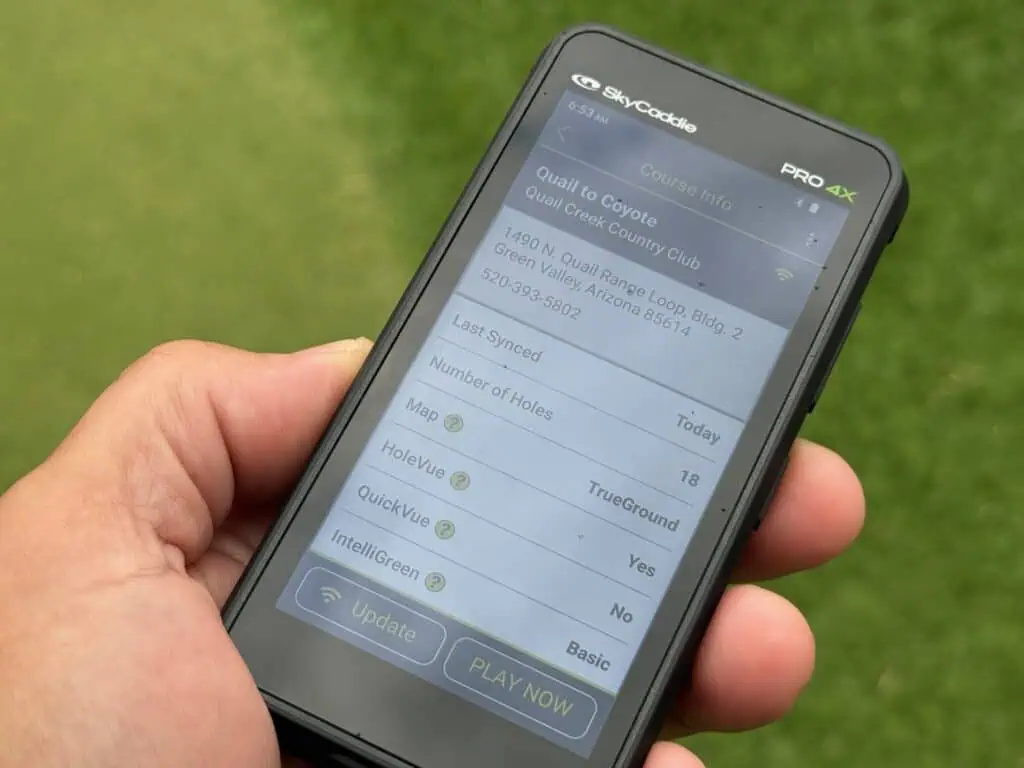 The SkyCaddie PRO 4x GPS Tourbook is tied for best handheld GPS unit I’ve ever used with the PRO 5X and there isn’t even a close 2nd. The accuracy, ease of use, and super long battery life makes these the best handheld golf GPS units you can buy. The only small drawback that it they the required yearly subscription. The 1st year is free with the $349 purchase, but after that there is $60 fee to have access to all of the SkyCaddie GPS features and library. Now you just need to decided which screen size is best for you.