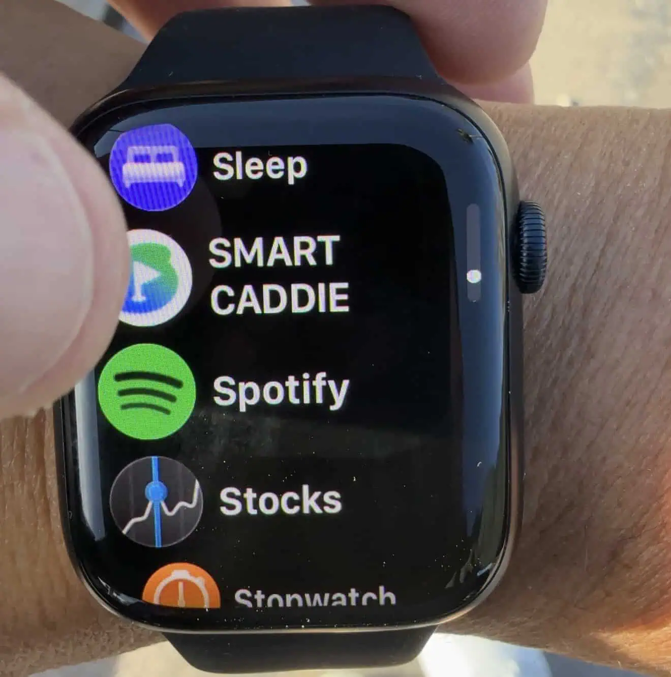 The Smart Caddie App can serve as your GPS rangefinder, shot tracker, and score keeper. The Apple Watch touchscreen is very easy to use and navigate. The only issue I had while using was the sensitivity of the Apple Watch dial button. Since it sits right up next to your golf glove, it sometimes reverts back to the watch face (home screen). That requires a quick button push again and back to the app, but sometimes it was annoying to look down and not have the hole map.