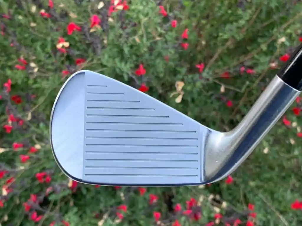 The Srixon ZX7 irons are a players iron that pros play and lower handicap amateurs can play with great success. They aren’t quiet as demanding as the Z-Forged (which actually aren’t that hard to hit either) but much more compact with less offset compared to the ZX5 irons. I also like a traditional distance with the ZX7 irons so I don’t need to add extra wedges to fill gaps. The 6 iron hits right around that 175 number which is exactly what I’m looking for in my irons. The thin top line sits very nicely behind the ball. I find compact, minimal offset irons fit my eye and my swing very well. The ZX7 irons proved that great accuracy can be had even in a 6 and 7 iron.