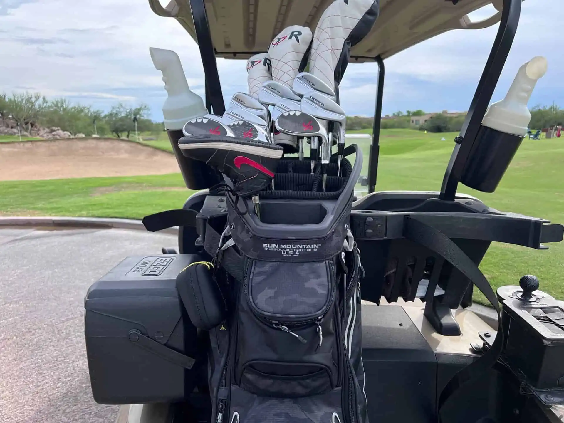 I played golf for 5 rounds with the Sun Mountain Maverick Cart Bag in use. It is a full featured lightweight cart bag from the industry leader Sun Mountain.