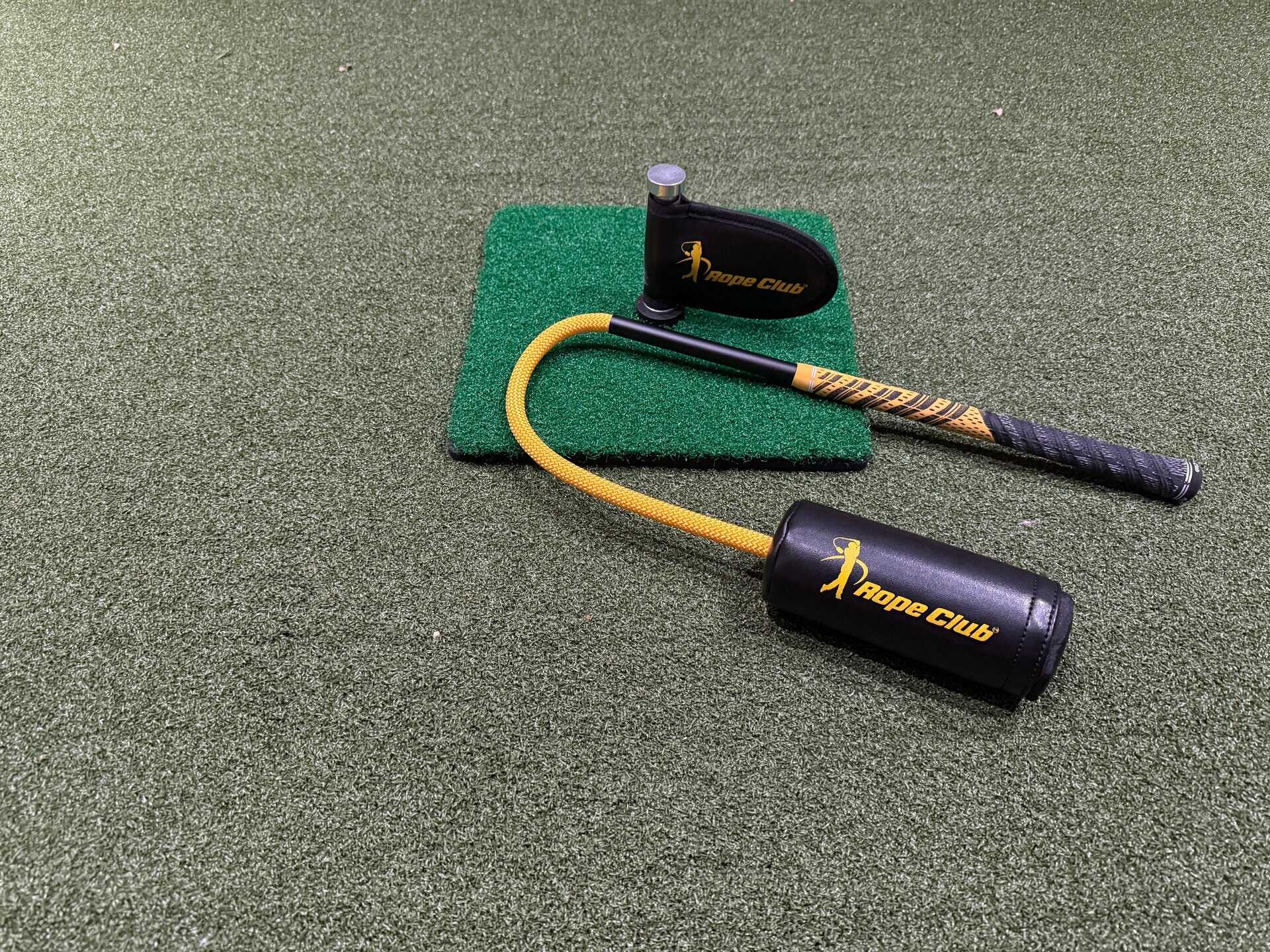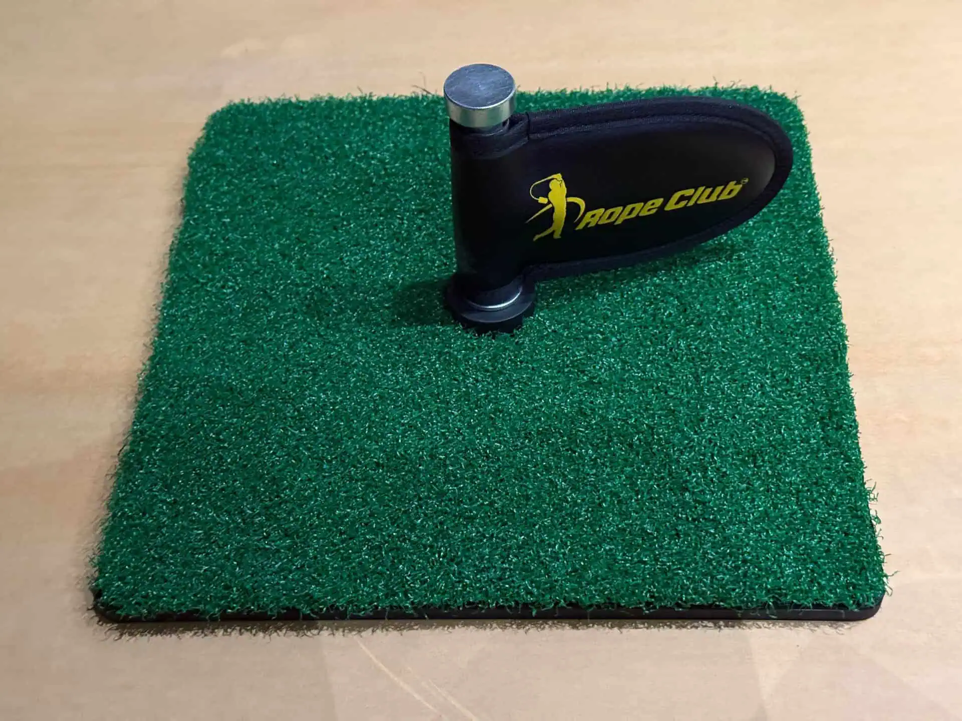 While The Rope Club Training Aid is sold with or without the Impact Spinner, I highly recommend getting the combo to get the most out of your training. It is a simple square of turf, with a metal post and what looks like a small flag on it. It is designed to practice the point of impact with The Rope Club. As you set up with the impact spinner where you’d have the ball with the flag pointing at you, you can swing the rope club for practice and hit the impact spinner. It is surprisingly loud at impact and builds confidence. The soft feel at impact won’t lead to fatigue while training.