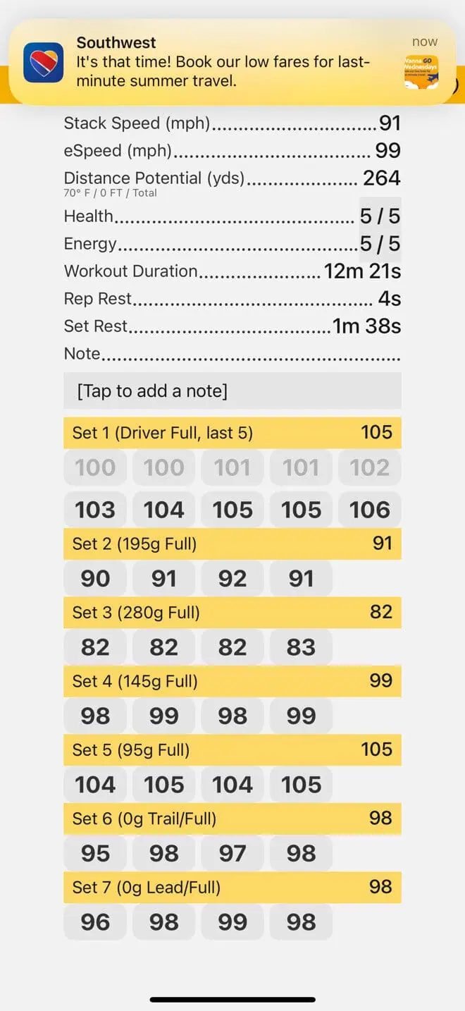 Interestingly enough when I took my driver to the range for testing I was consistently getting over 110mph clubhead speed.