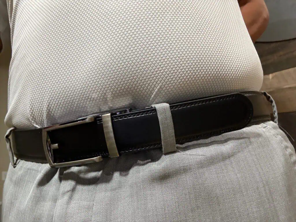 As a former construction worker, I heard that expression on an almost daily basis: measure twice, cut once. It is a great motto to remember with a Vittelo Belt since if you cut it short, there is no adding on length. They have a tutorial and instructions that come with the belt for cutting. I’d ere on the long side because you can’t just punch more holes in the belt. This is nice that you don’t have to worry if you bought the right size belt, they are all once size fits all in the box. I followed the instructions and feel like the leather beyond the buckle is too long to make use of all of the ratchet adjustment section of the belt. I’m near the last notch and still have a long section past the buckle and through my pant loop.